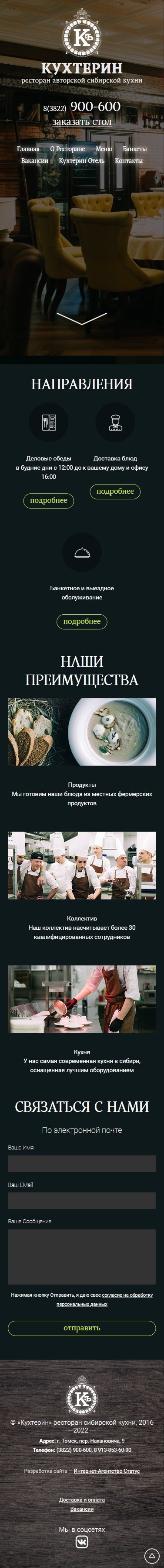Фамилия Кухтерин очень известная для города Томска. Род этих купцов и промышленников внёс большой вклад в развитие томских предприятий, существующих и сегодня. Концепция нашего ресторана - пригласить вас в гости к настоящим сибирским купцам, угостить лучшими традиционными блюдами, характерными именно для наших широт, а главное, создать именно ту атмосферу, которая была созвучна духу того времени.