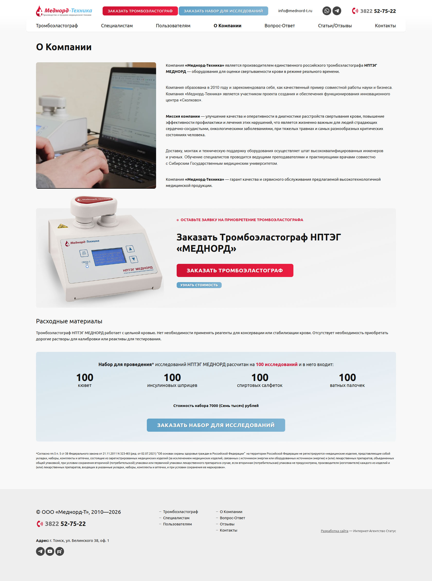 Специализированное производственное предприятие, занимается разработкой, выпуском и реализацией высокотехнологичного медицинского оборудования для лабораторной диагностики. Основным направлением деятельности выступает создание аппаратно-программных комплексов для исследования реологических свойств крови (пьезоэлектрических тромбоэластографов). Флагманский продукт — комплекс АРП-01М «Меднорд», позволяющий проводить экспресс-анализ свертываемости крови без использования химических реагентов. Ориентировано на сотрудничество с отделениями анестезиологии, реанимации, акушерства и гинекологии, а также научно-исследовательскими институтами. Гарантирует качество продукции и сервисное обслуживание, объединяя научный потенциал с современными производственными технологиями.