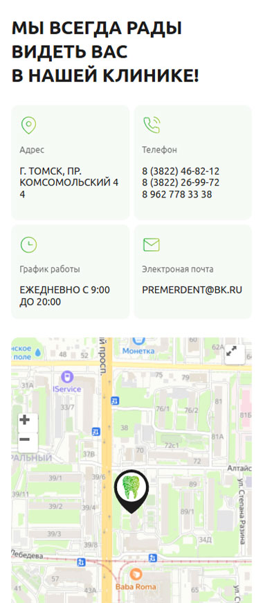 Небольшая и очень уютная стоматология в Томске. Оказывает большой спектр современных стоматологических услуг — от гигиенических процедур до имплантации зубов.