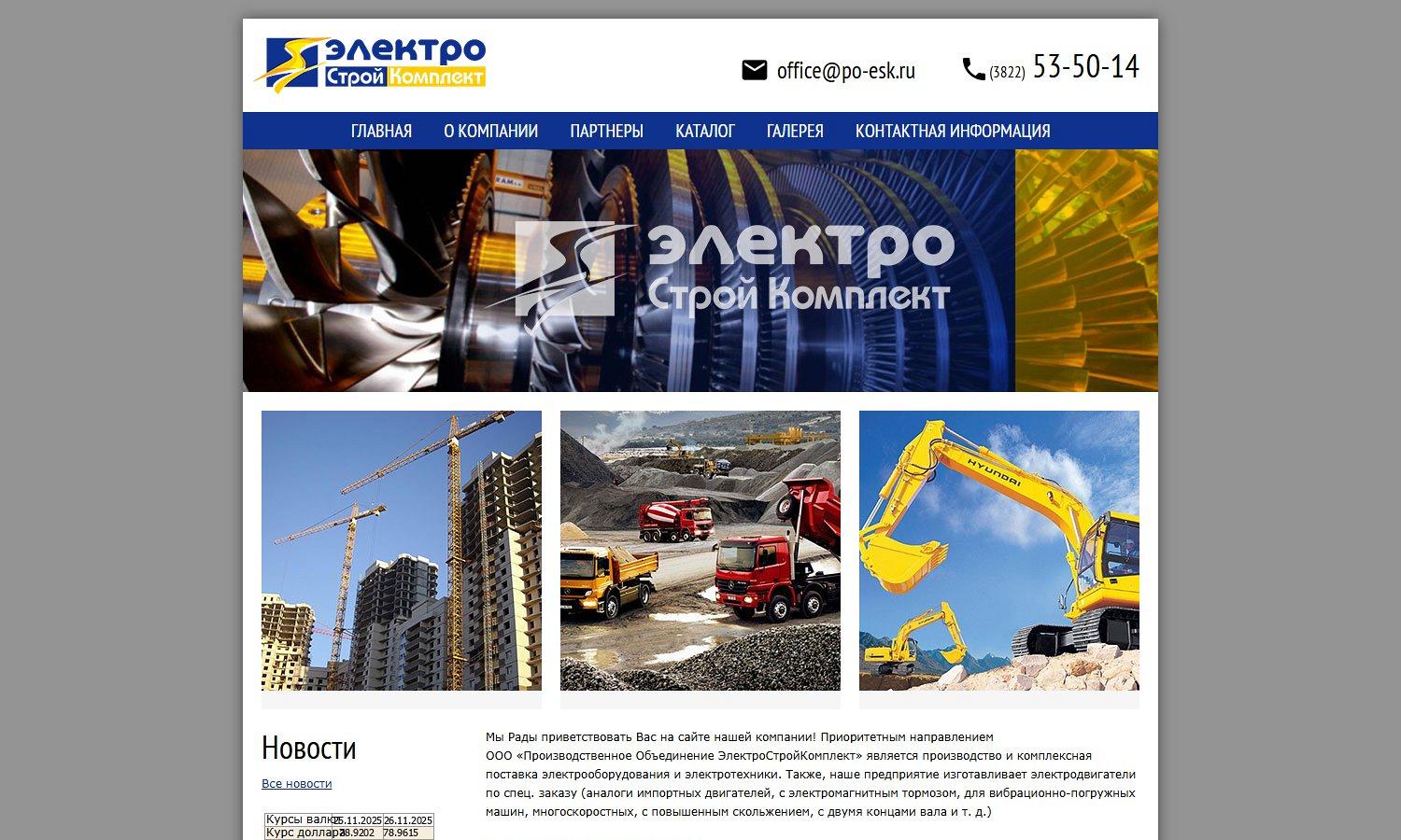 Мы Рады приветствовать Вас на сайте нашей компании! Приоритетным направлением ООО «Производственное Объединение ЭлектроСтройКомплект» является производство и комплексная поставка электрооборудования и электротехники. Также, наше предприятие изготавливает электродвигатели по спец. заказу (аналоги импортных двигателей, с электромагнитным тормозом, для вибрационно-погружных машин, многоскоростных, с повышенным скольжением, с двумя концами вала и т. д.)