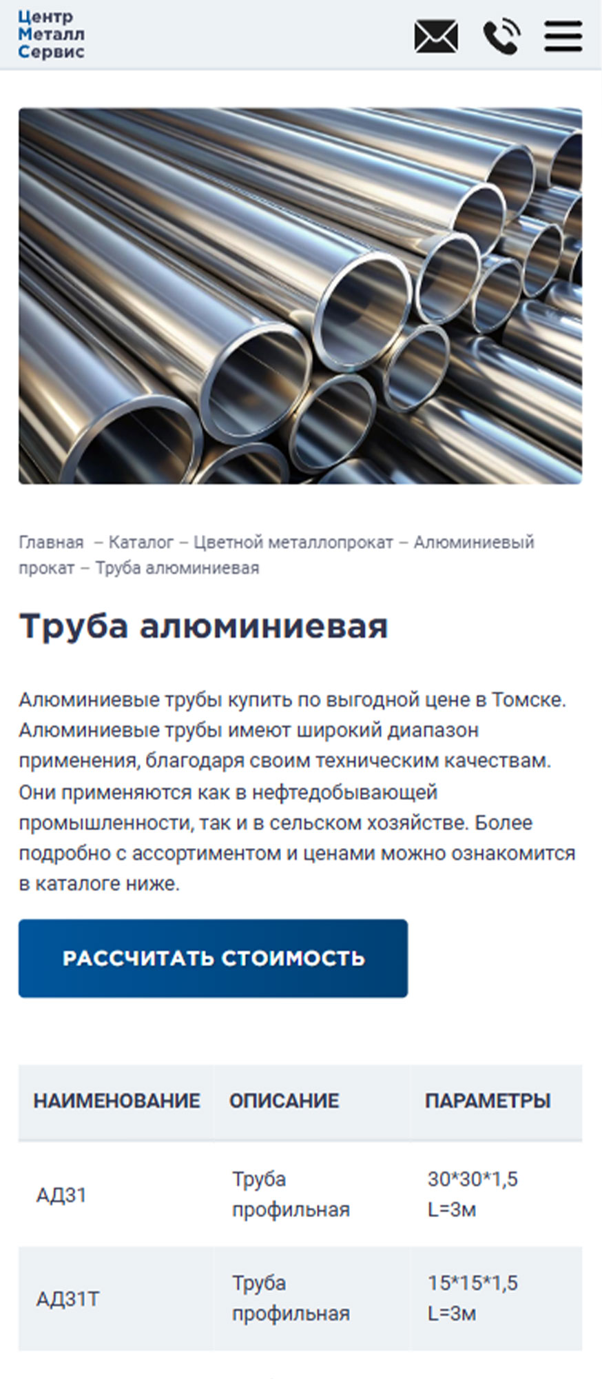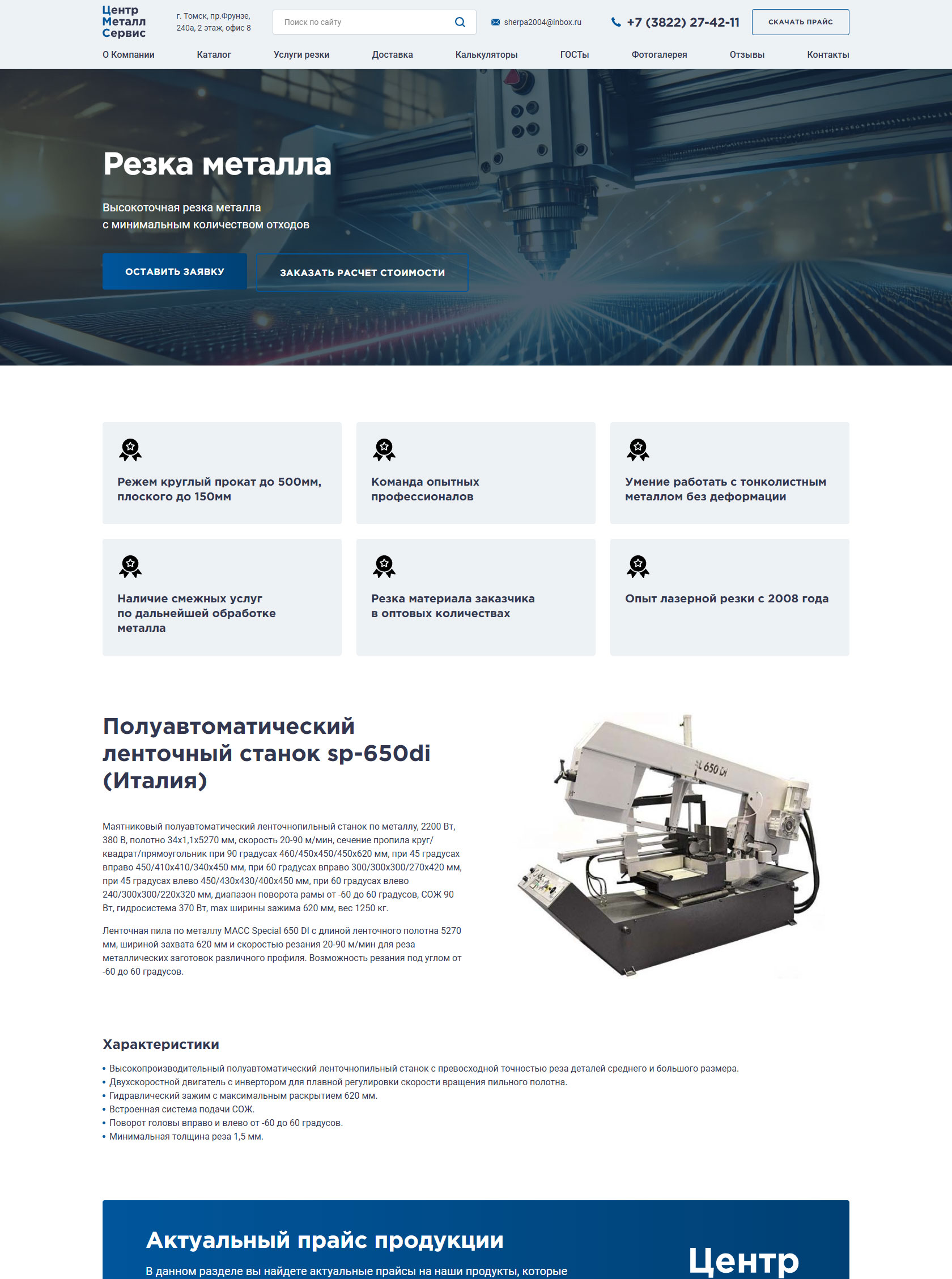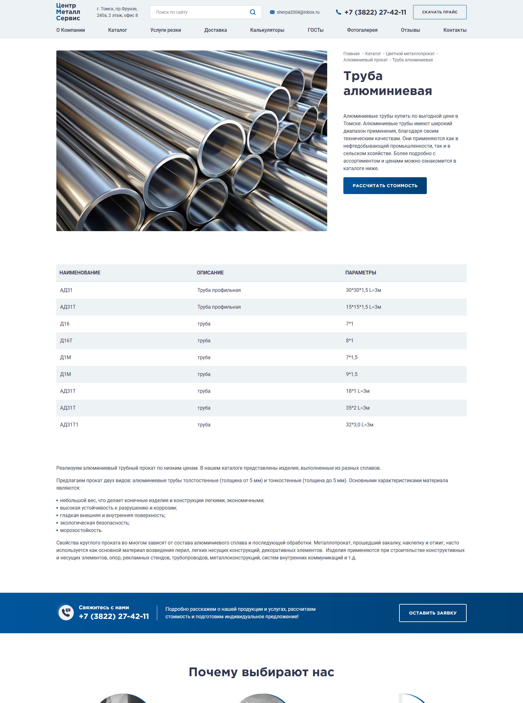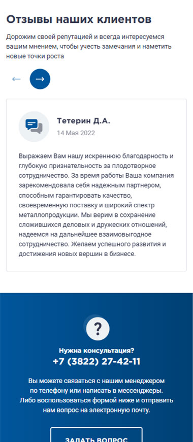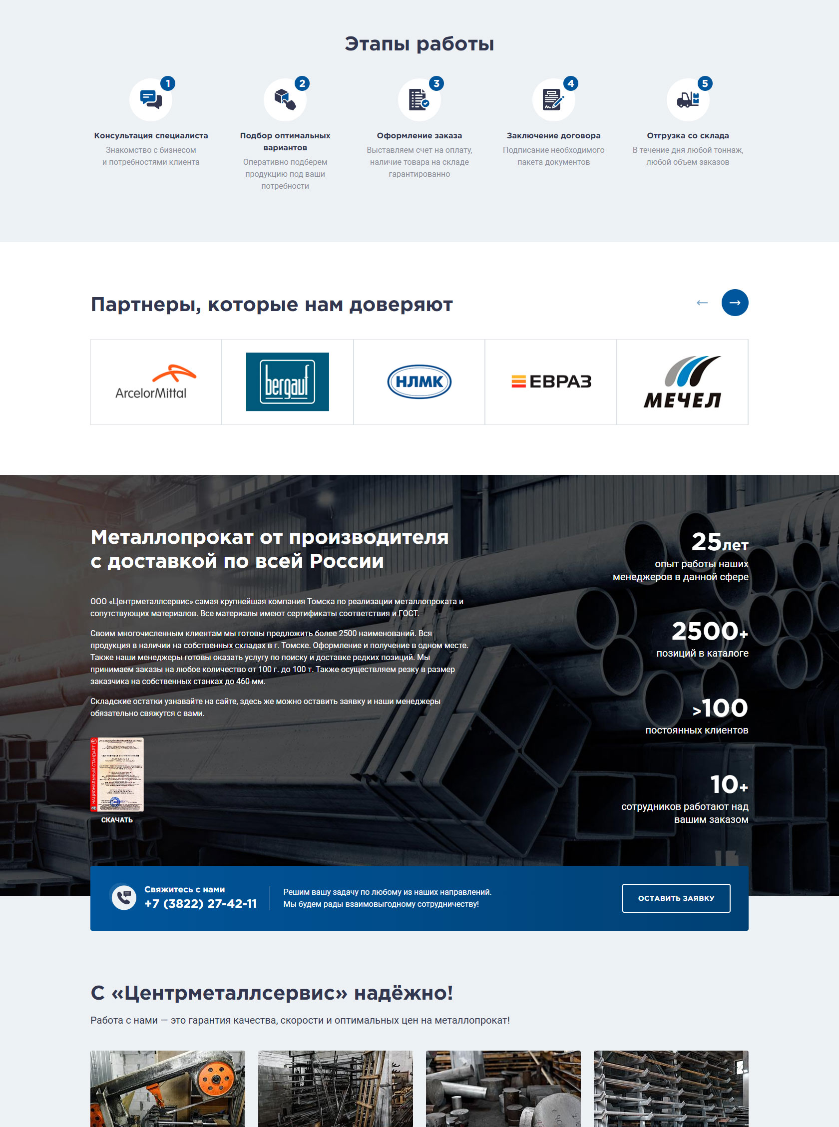 Крупнейший поставщик металлопроката в Томске, специализирующийся на оптовой и розничной реализации черного, цветного и нержавеющего металла. Ассортимент насчитывает более 2500 позиций, включая алюминий, медь, латунь, бронзу, титан, а также электроизоляционные материалы и смазочно-охлаждающие жидкости. Обеспечивает наличие продукции на собственных складах и предоставляет услуги по резке металла в размер заказчика (на станках до 460 мм). Принимает заказы любого объема — от 100 грамм до 100 тонн, гарантируя отгрузку в день обращения и оперативную доставку собственным автопарком. Вся реализуемая продукция сертифицирована и соответствует стандартам ГОСТ. Команда менеджеров с опытом с 2008 гоработы в сфере металлопроката оказывает профессиональную поддержку в подборе материалов и поиске редких позиций.