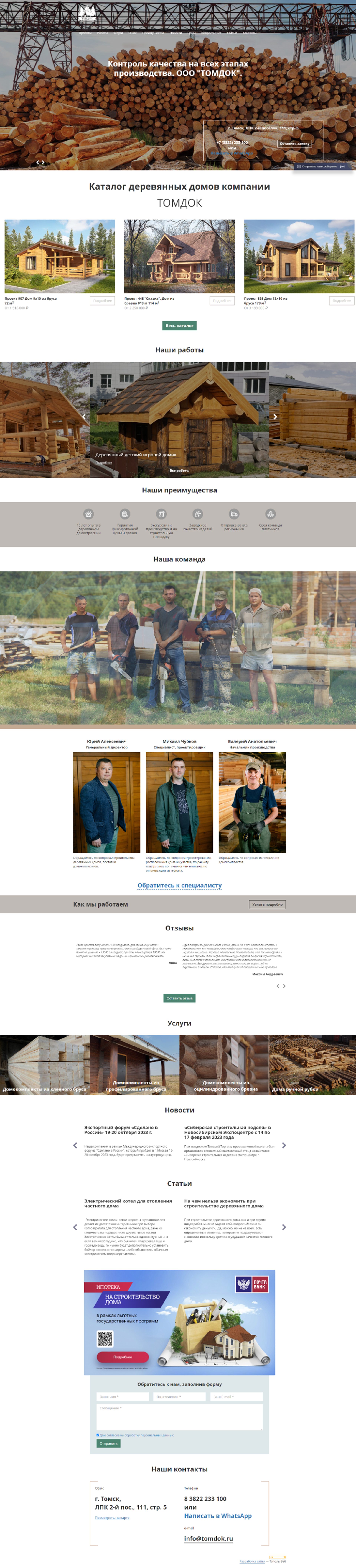 Компания полного цикла, действует на рынке деревянного домостроения с 2008 года. Располагает собственной производственной базой для обработки сибирского кедра и сосны, а её портфолио насчитывает более 300 реализованных объектов по всей России и странам СНГ. Предлагает заказчикам выбор из 700 готовых архитектурных решений и обеспечивает пятилетнюю гарантию на все выполненные строительные работы, закрепленную в договоре.